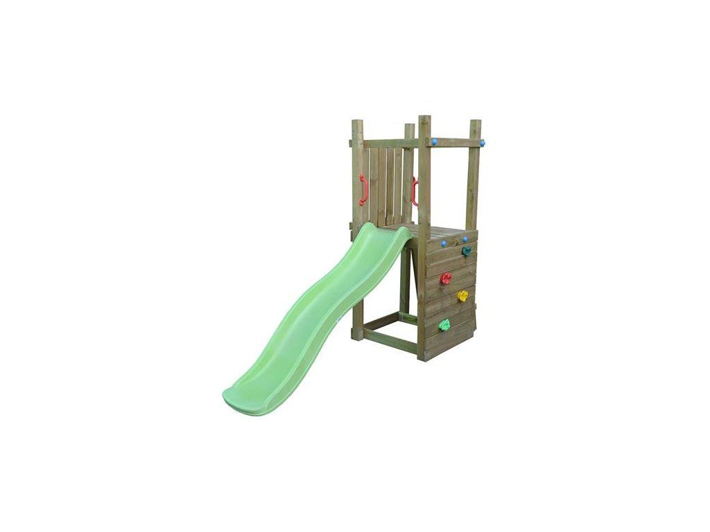 Toto multifukční dětské hřiště si Vaše děti určitě zamilují. Na hlavní věž děti vylezou po lezecké stěně a dolů se pak dostanou sklouznutím po krásné skluzavce. Další zábavu si pak užijí na houpačce. Jednoduše ideální zábava pro každé dítě.